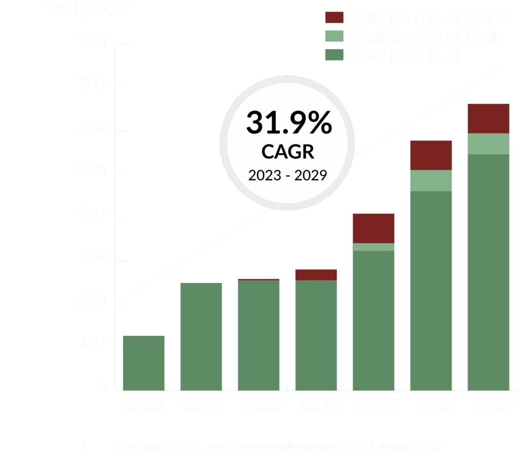 By 2029, approximately 25% of Seaspan’s TEU capacity will run on alternative fuels.